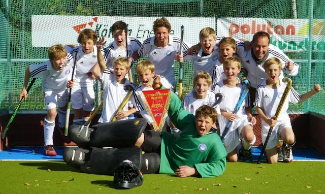 Am Tag der deutschen Einheit haben unsere Knaben B den in diesem Jahr zum ersten Mal ausgespielten Titel des ostdeutschen Meisters gewonnen. In Köthen besiegte unser Team im Spielmodus "Jeder gegen Jeden" zuerst den ESV Dresden mit 3:0 und dann den SSC Jena mit 4:1. Im letzten Spiel musste Gastgeber Cöthener HC 02 unbedingt besiegt werden, da der Gegner seine ersten beiden Spiele ebenfalls gewonnen hatte, aber ein besseres Torverhältnis aufwies. In einem dynamischen Spiel zeigte unser Team seine beste Turnierleistung und bezwang die Köthener Jungs am Ende verdient mit 2:0. Der rote Wimpel geht also dieses Jahr nach Berlin zum Roseneck. Ganz große Klasse, Jungs!